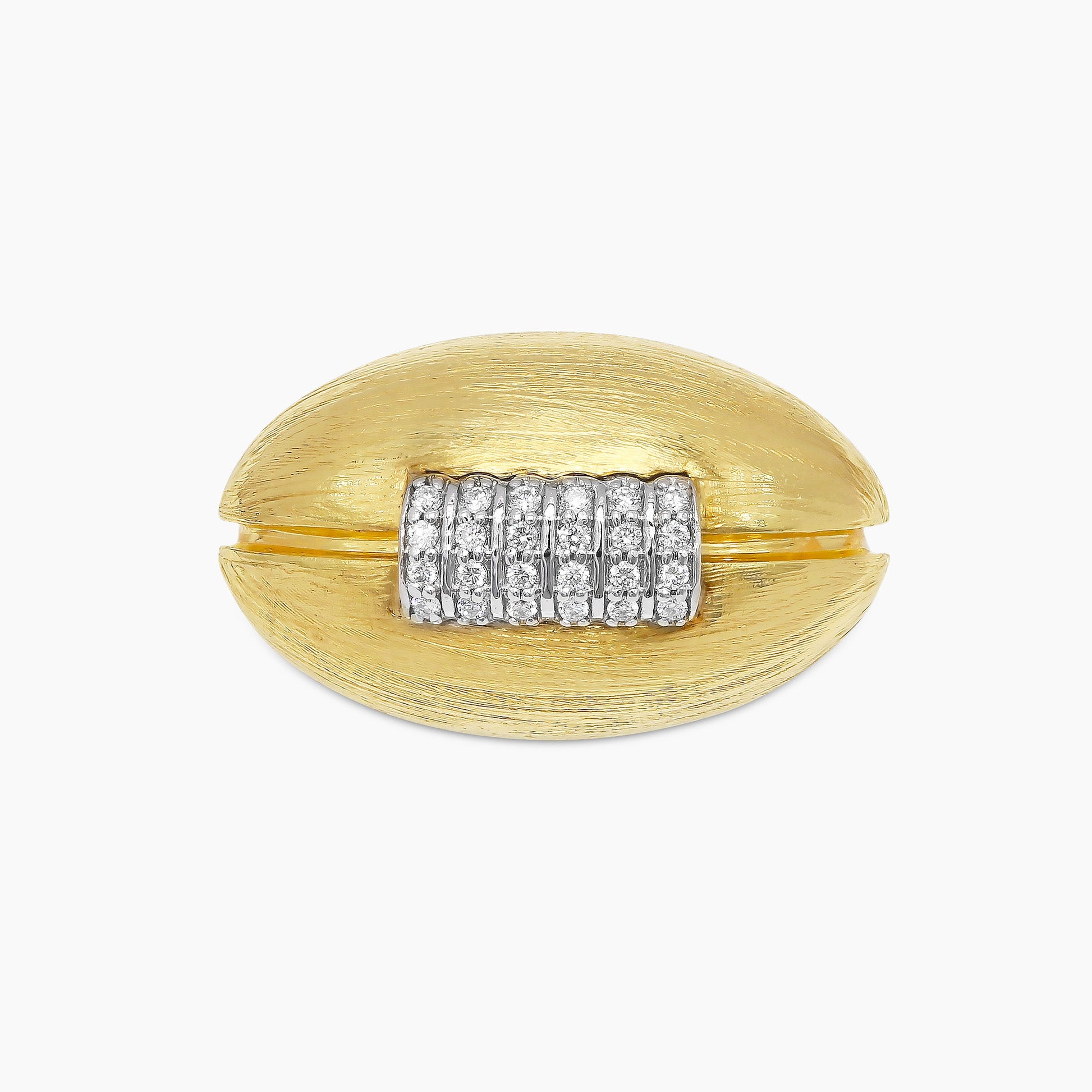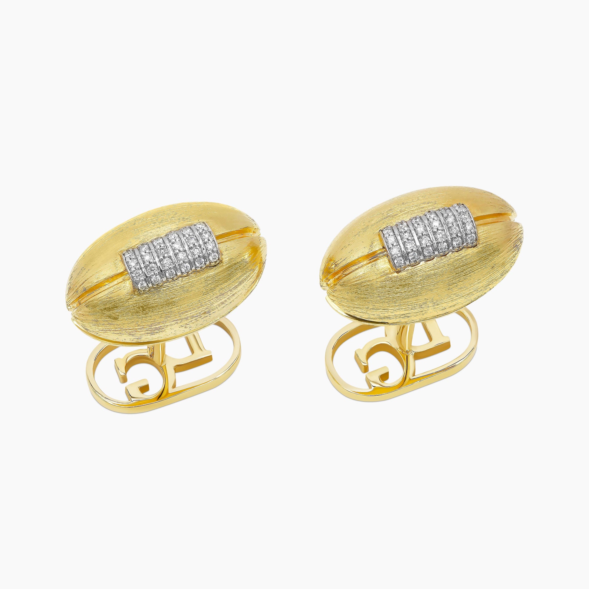 Cufflinks that embody the essence of American football. Sculpted in 18kt yellow gold with DG's signature brushed texture, they showcase 48 round brilliant white natural diamonds, echoing the laces of the ball. A bold tribute to passion, precision, and the relentless pursuit of greatness.