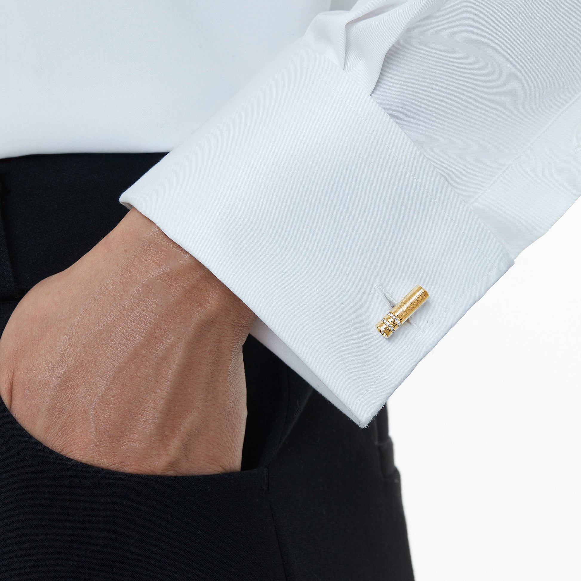 Embodying elegant minimalism, these 18kt gold cufflinks are enhanced by DG’s unique brushed texture and feature two halos of 56 round brilliant white natural diamonds. A discreet yet refined statement piece, these cufflinks capture modern, subtle sophistication.