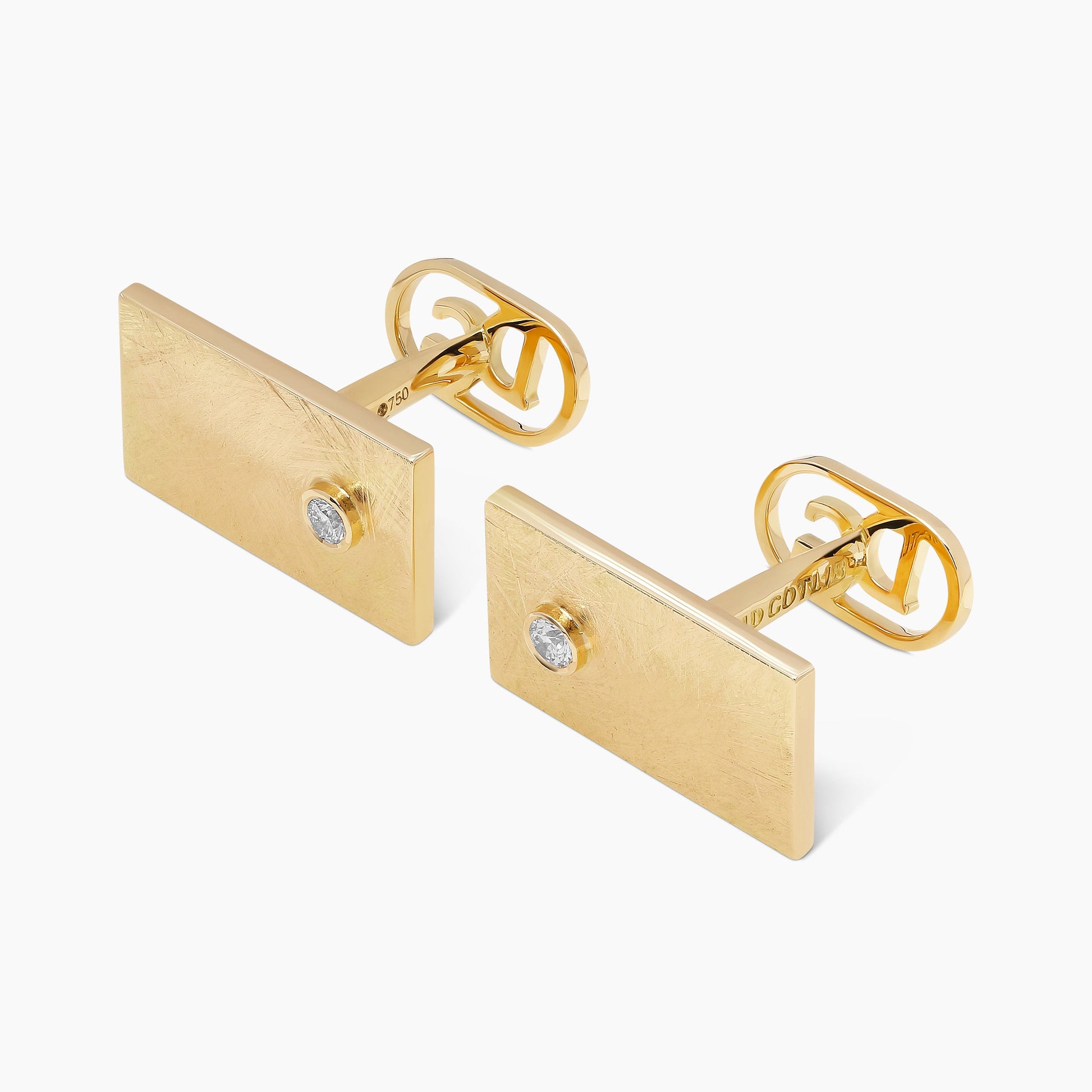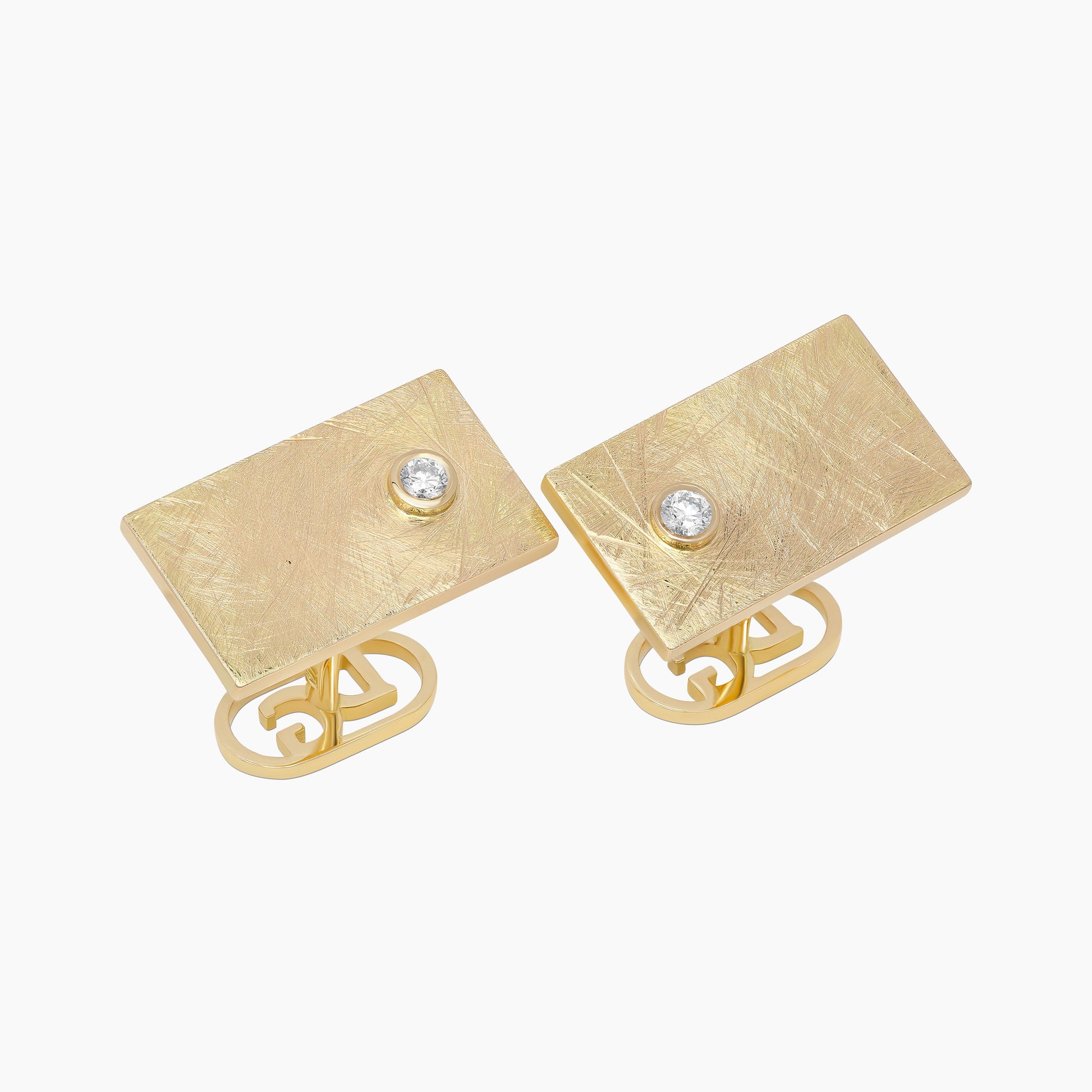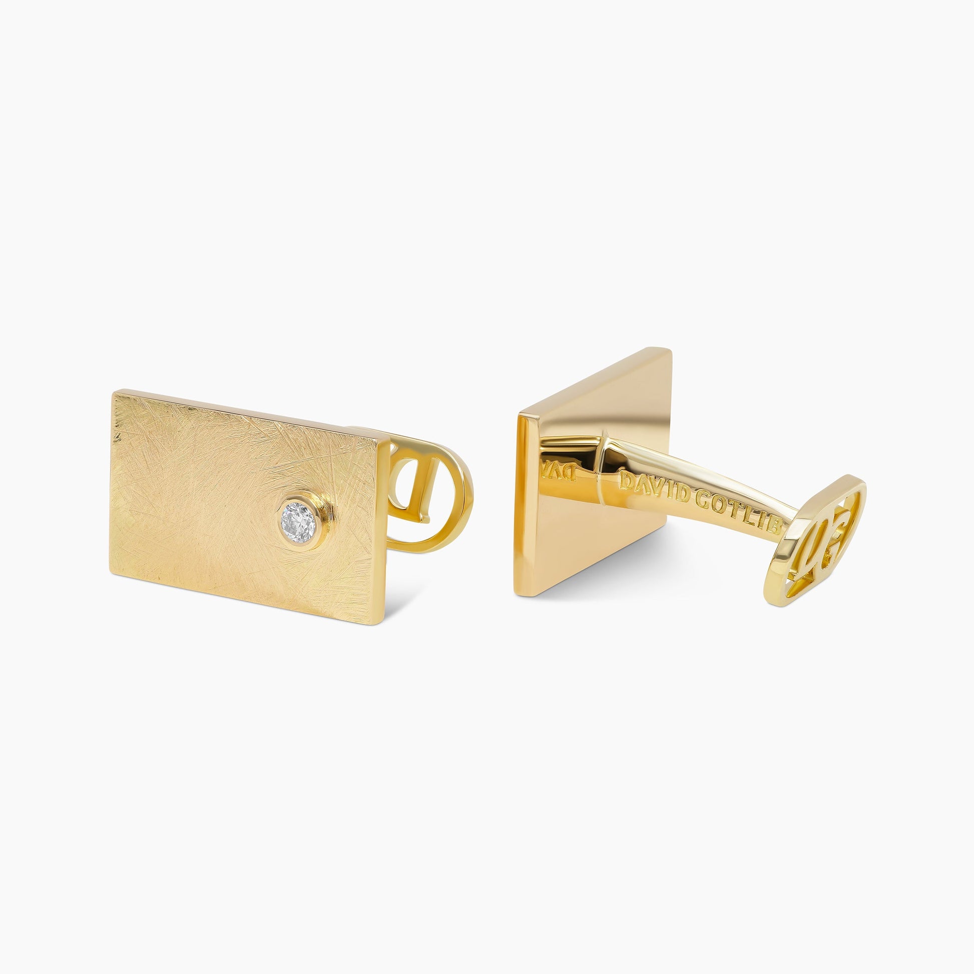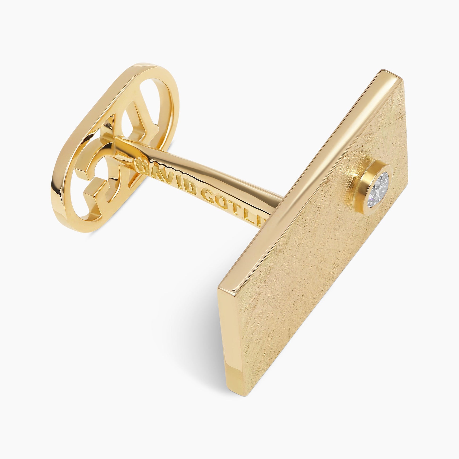 A redefined classic, these 18kt gold cufflinks capture the essence of minimalism and timeless luxury with two bezel-set round brilliant natural diamonds shining against David Gotlib’s signature brushed backdrop.