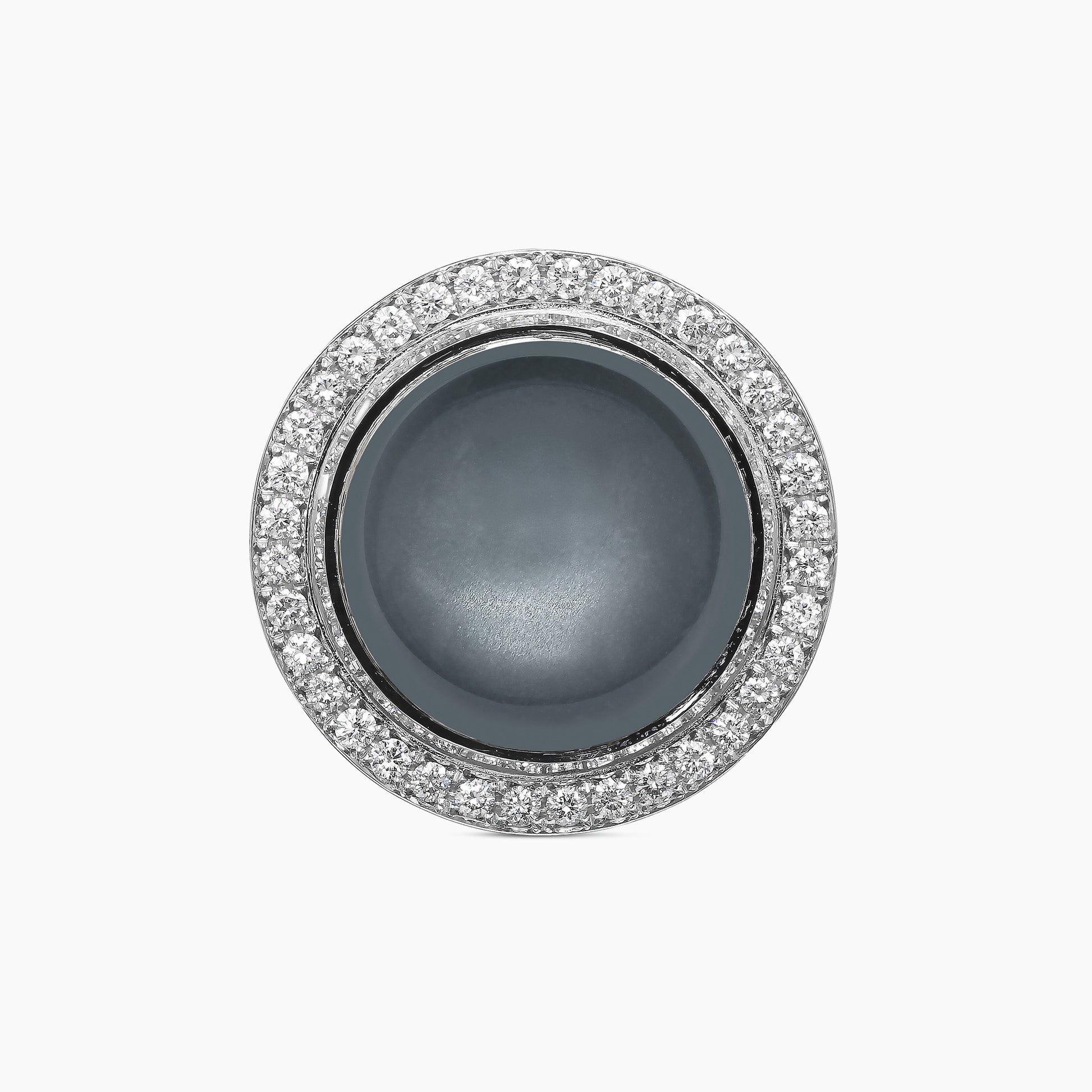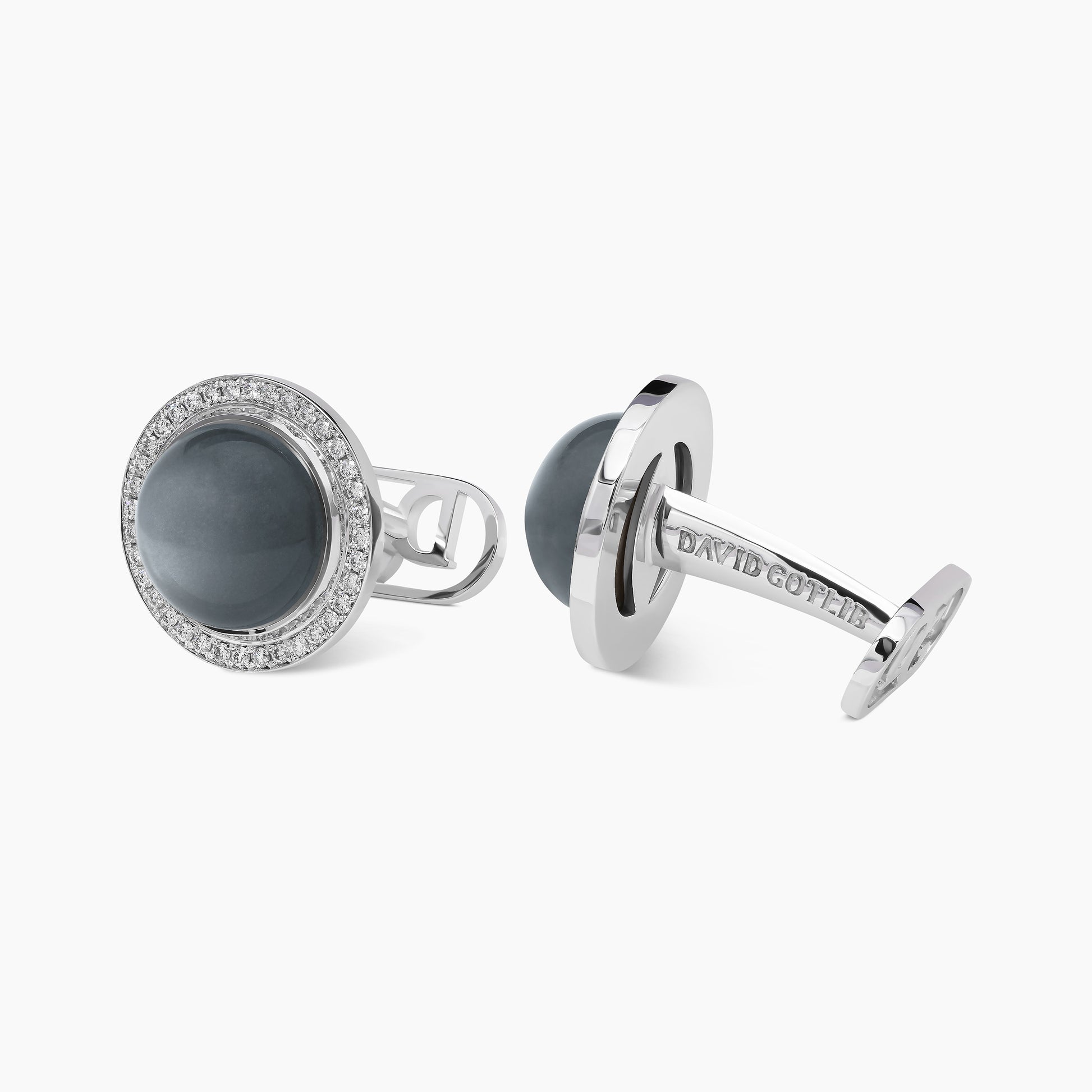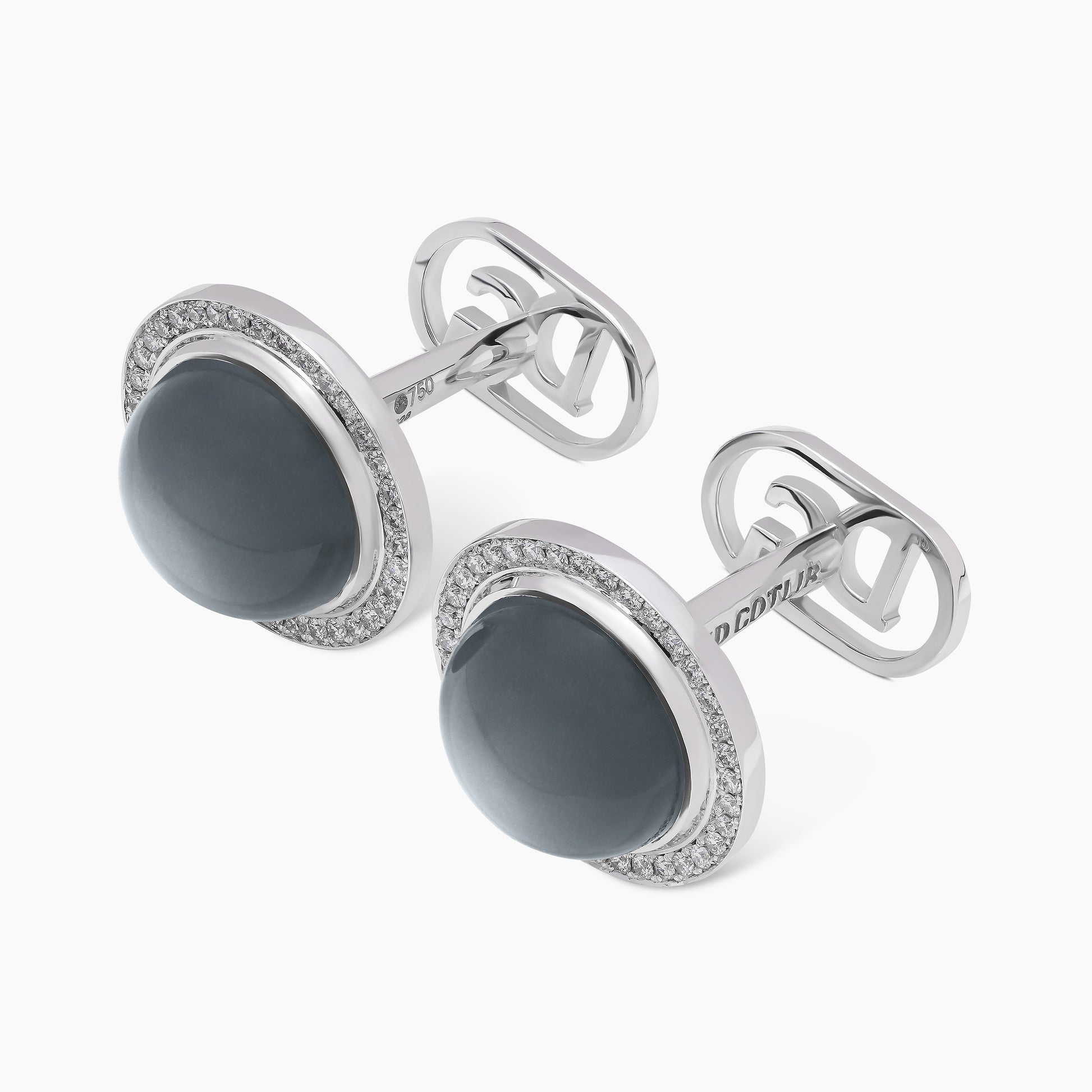 Featuring two luminous gray moonstones, these cufflinks are reminiscent of the moon’s gentle reflection, set in 18k white gold and encircled by 72 round brilliant white diamonds—endlessly evoking the moon’s ever-changing, renewing allure. A perfect harmony of nature’s elegance and timeless beauty.