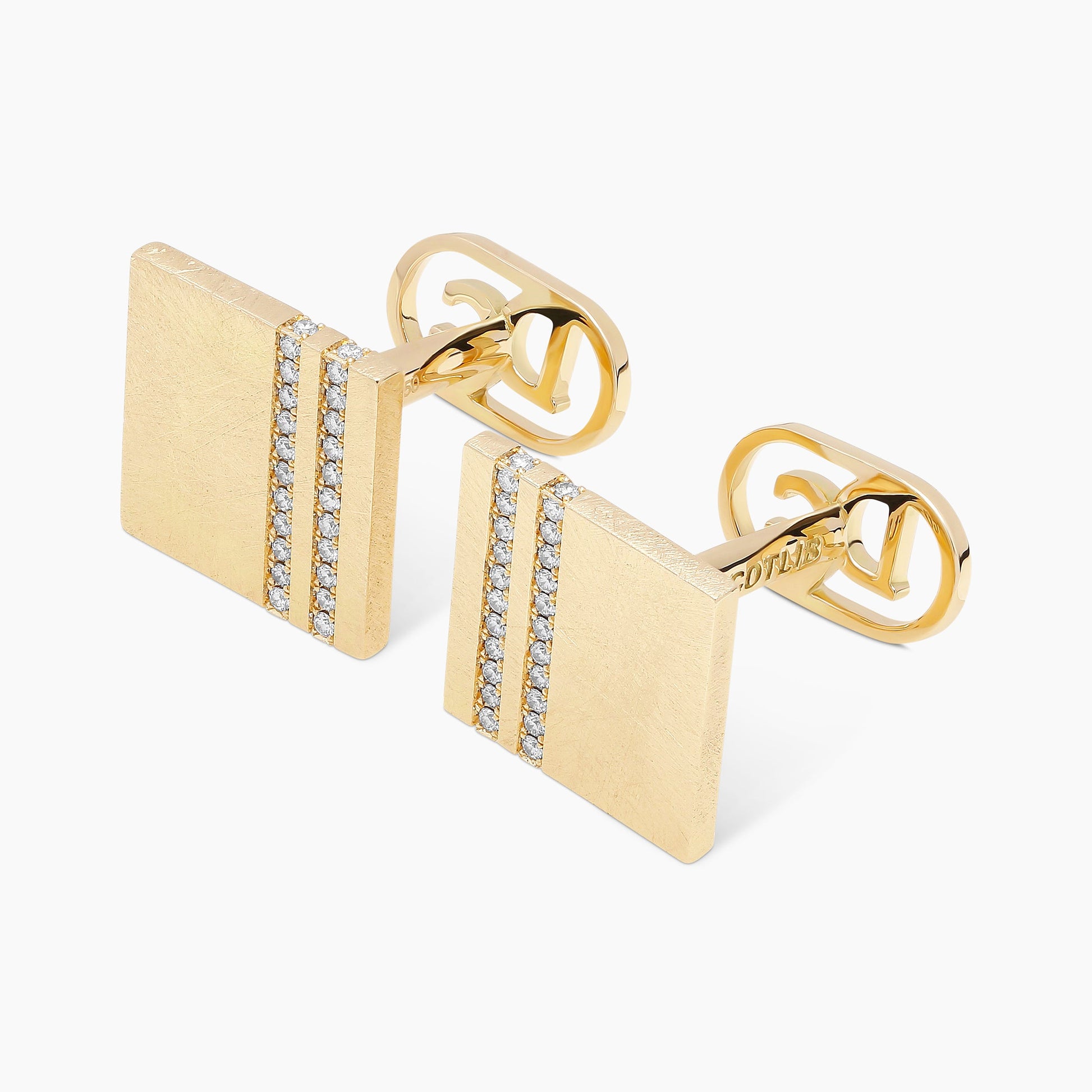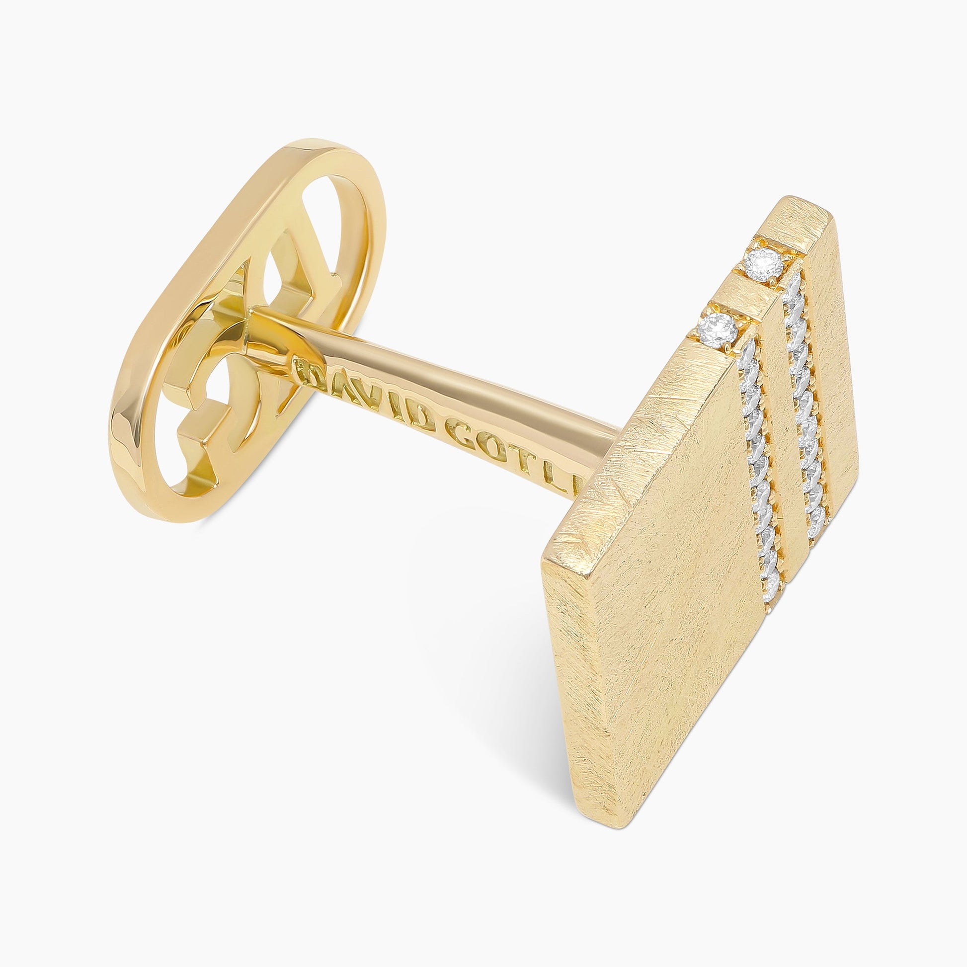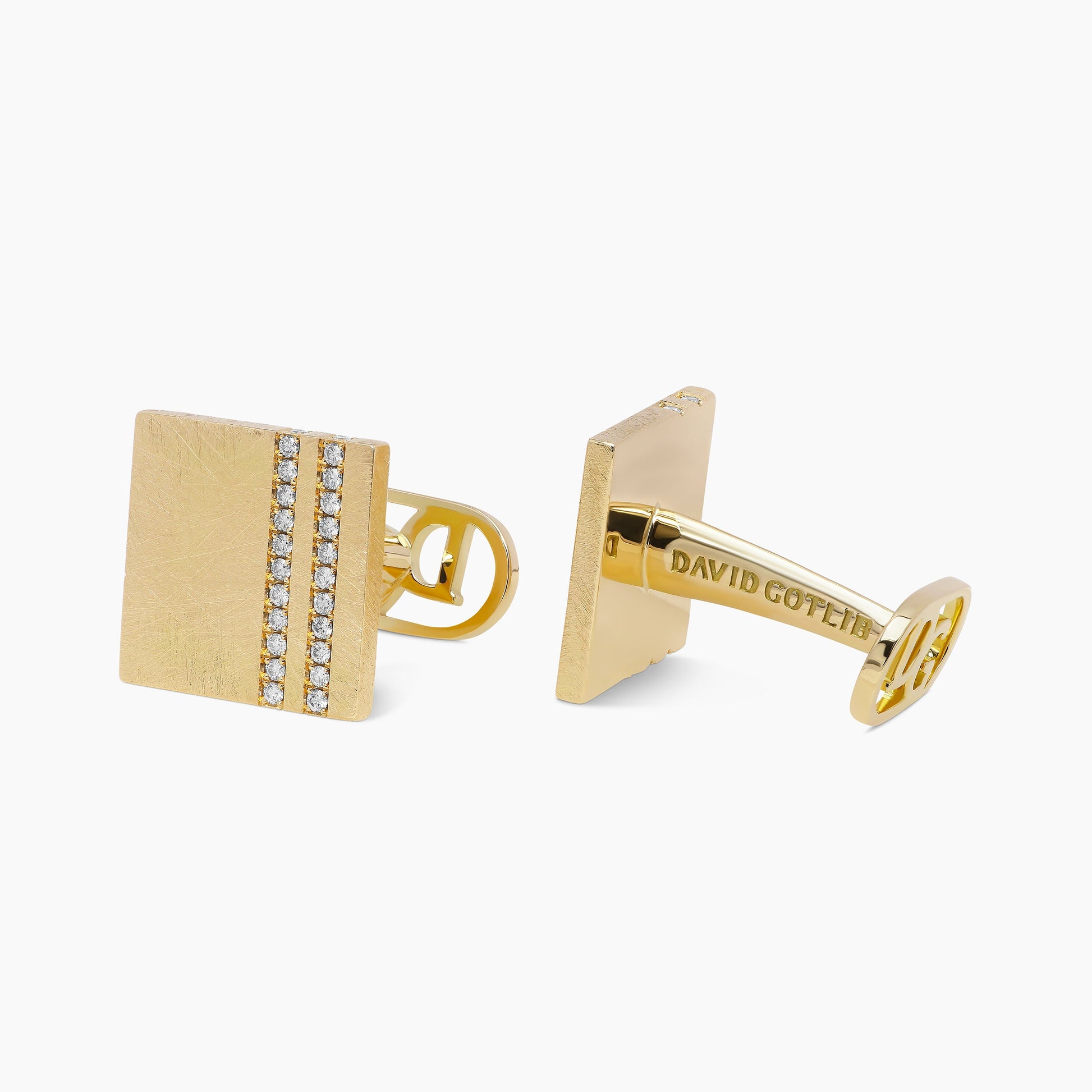Straightforward and distinctively sleek, these cufflinks showcase the brilliance of 52 perfectly hand-set natural diamonds, paired with solid 18kt gold. The simple elegance of their geometric shape is enhanced by David Gotlib’s signature brushed texture, allowing its rich patina to develop beautifully over time.