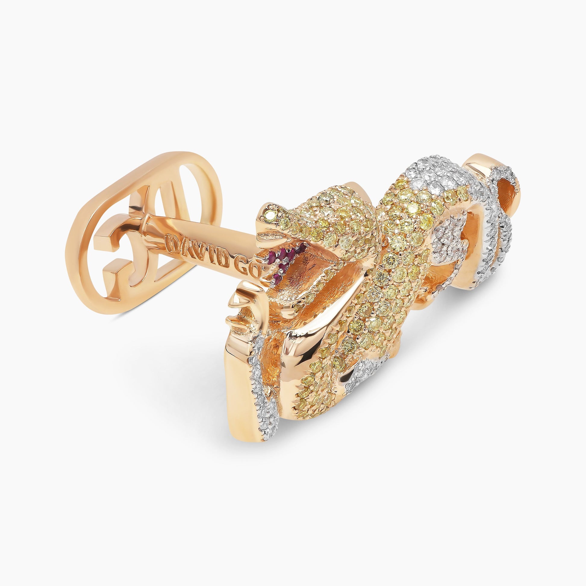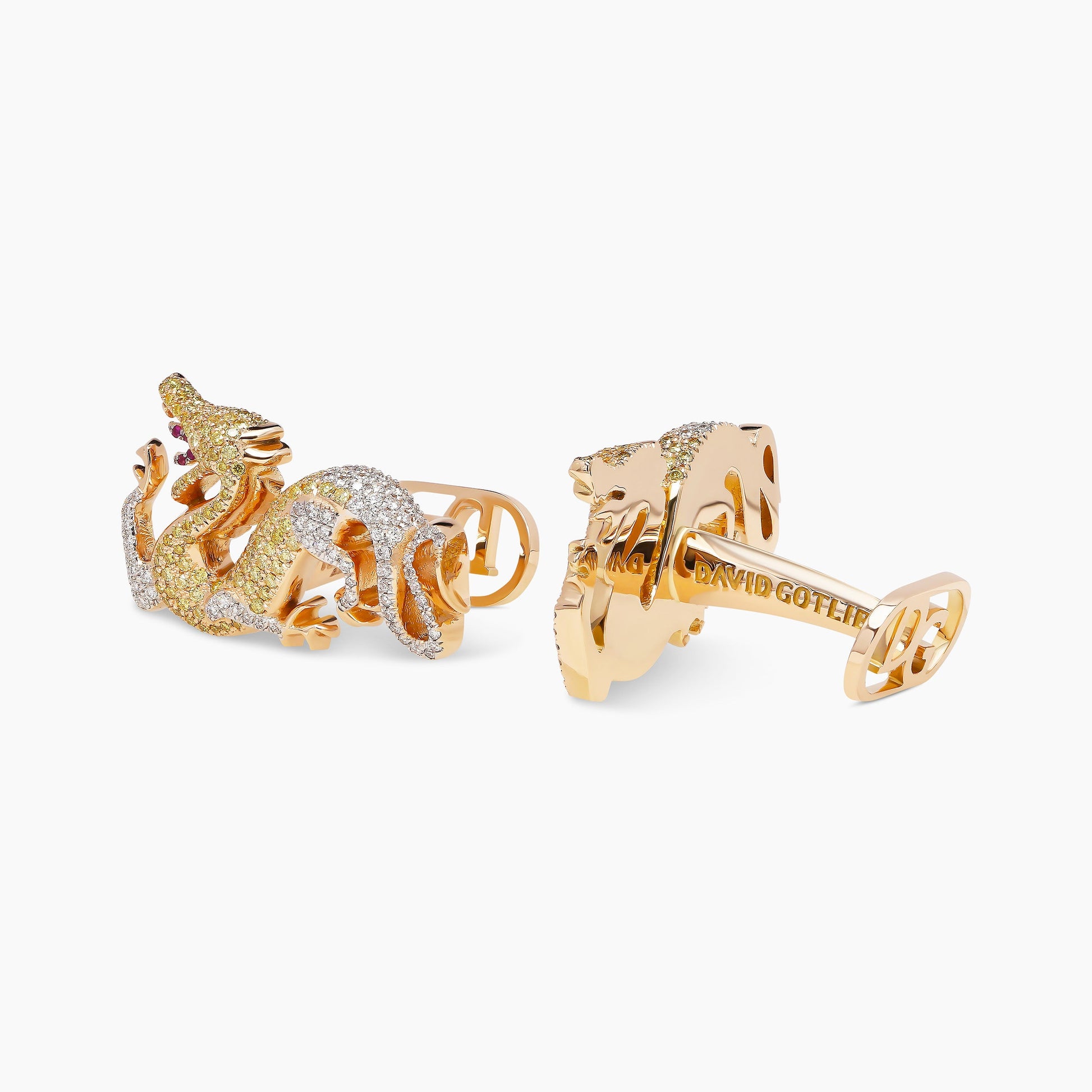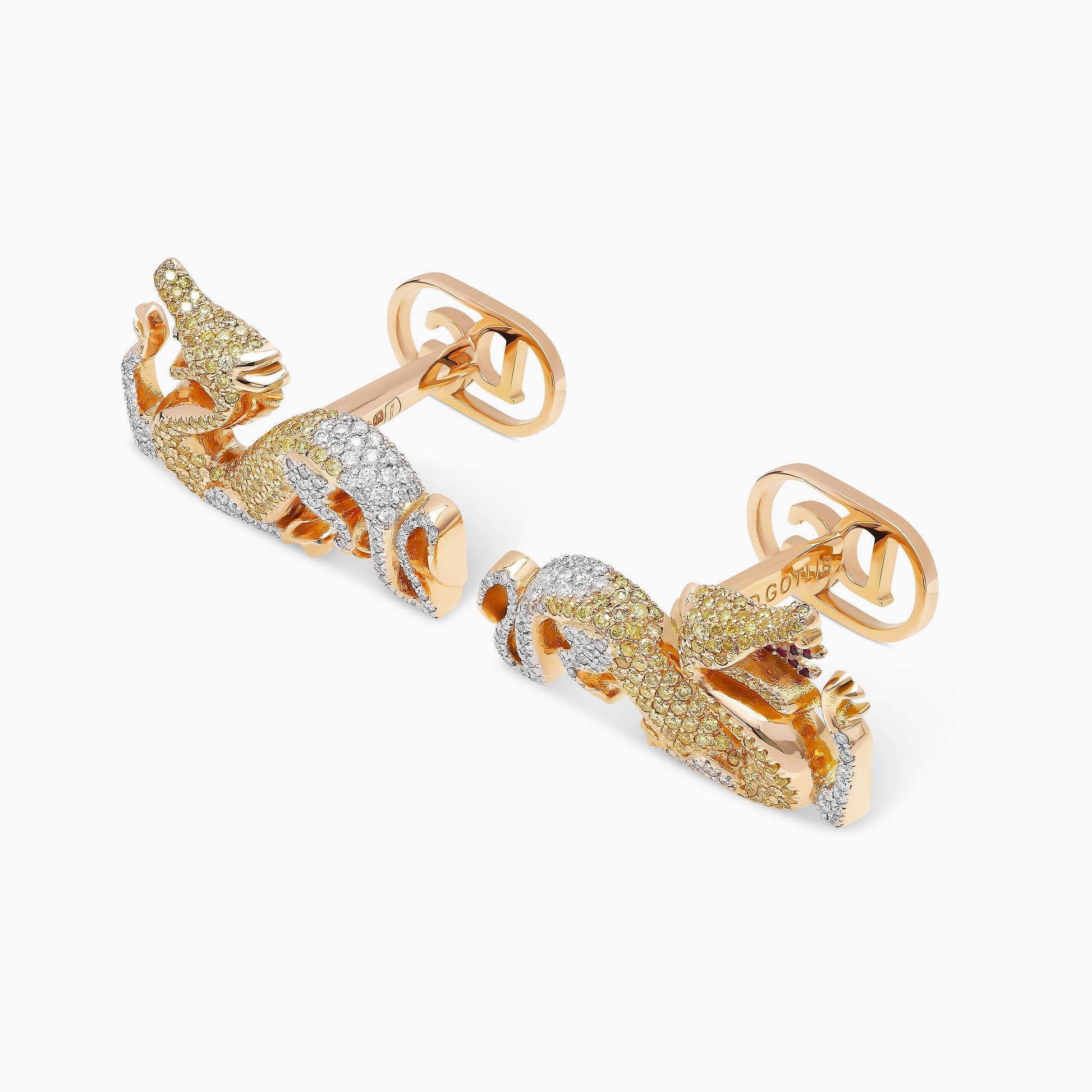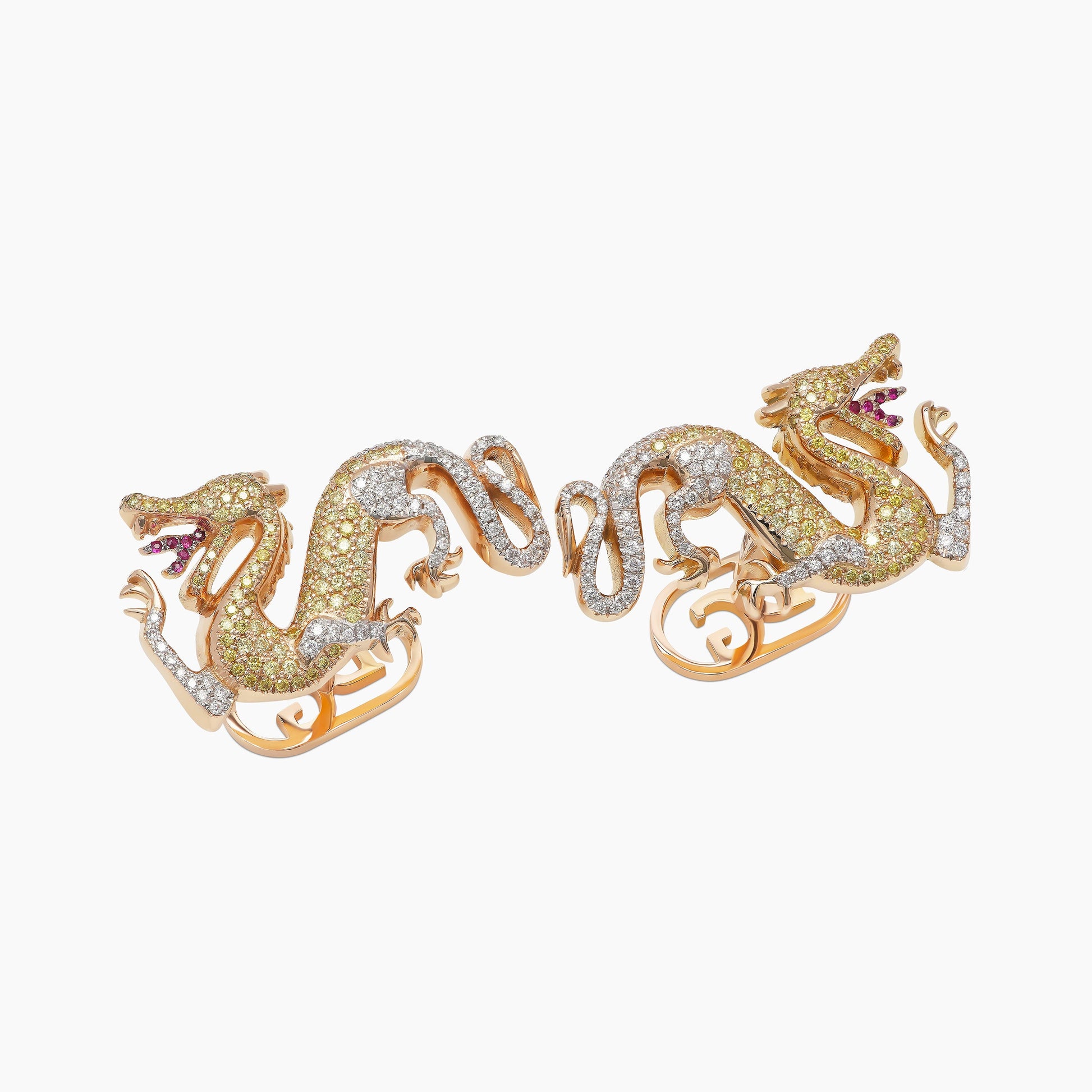 A tribute to wisdom, strength, and fortune, these legendary dragons embody confidence and a trailblazing spirit. Crafted in 18kt yellow gold, this pair of cufflinks dazzles with 128 brilliant round white natural diamonds, 298 round fancy yellow natural diamonds, and 34 fiery rubies, honoring tradition while celebrating individuality.