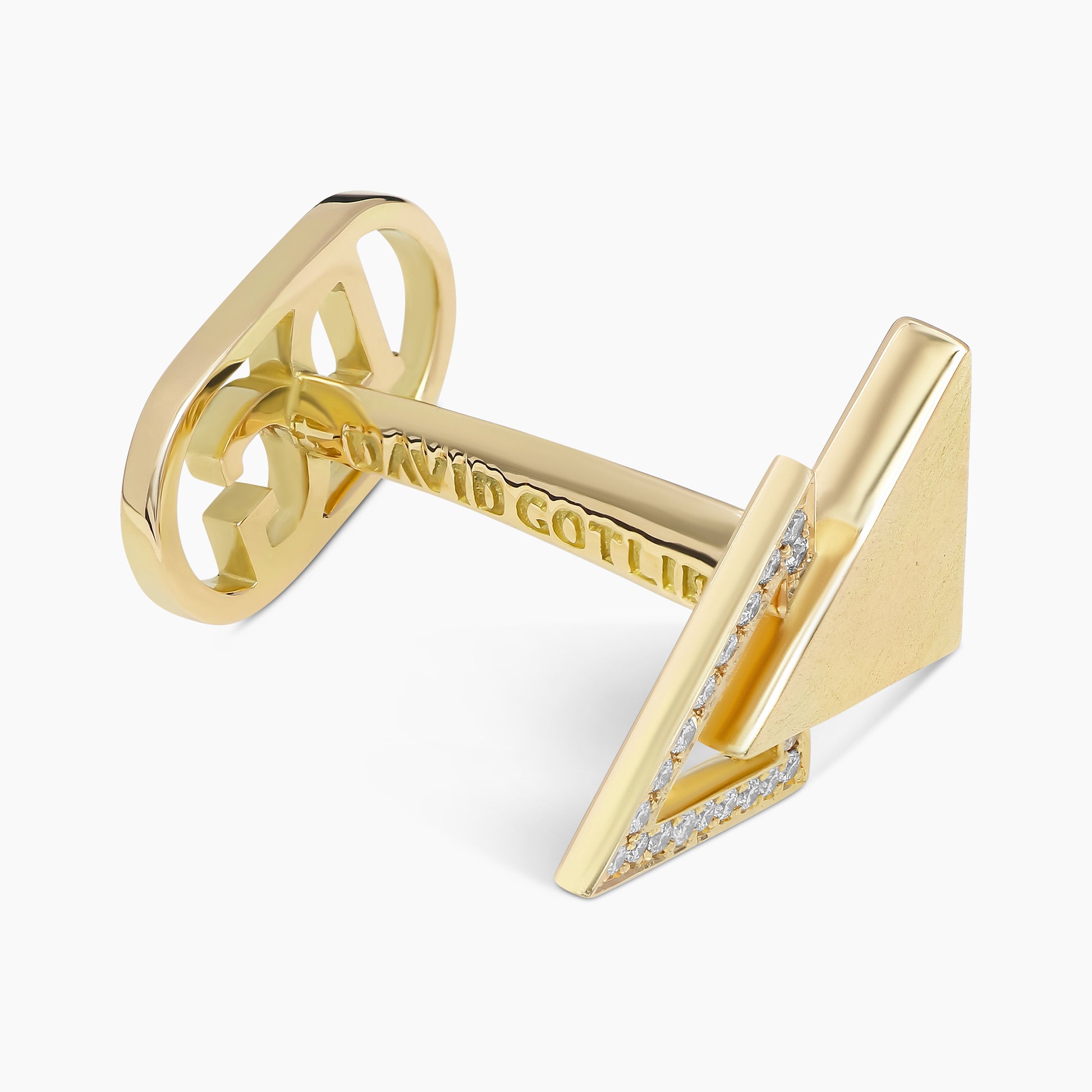 An impeccable geometric interpretation, this design embodies the stability inherent in the strongest straight-edged shapes. Crafted in 18k gold, it features 38 round brilliant diamonds and David Gotlib’s signature brushed texture, adding movement and dynamism to its surface.